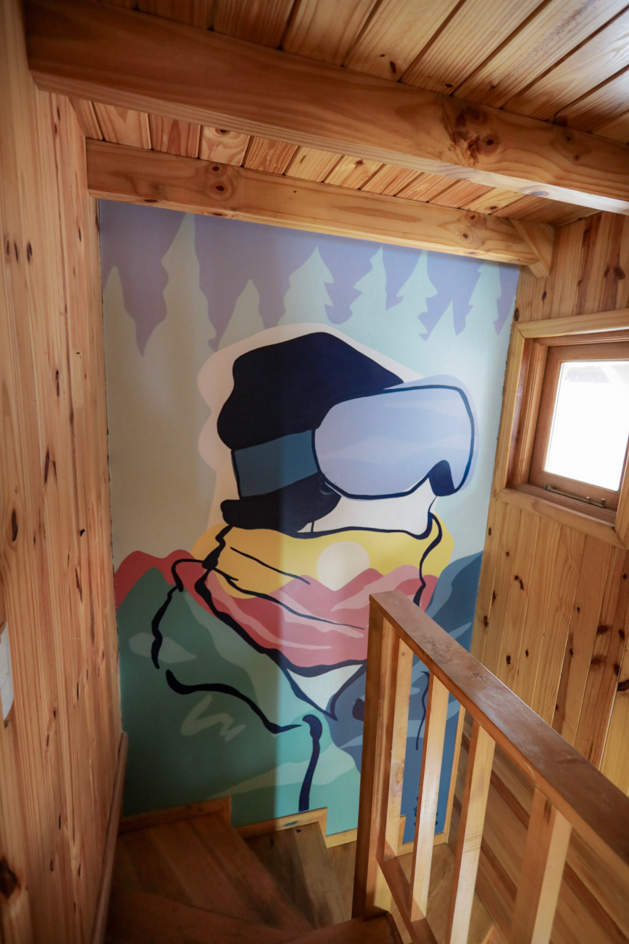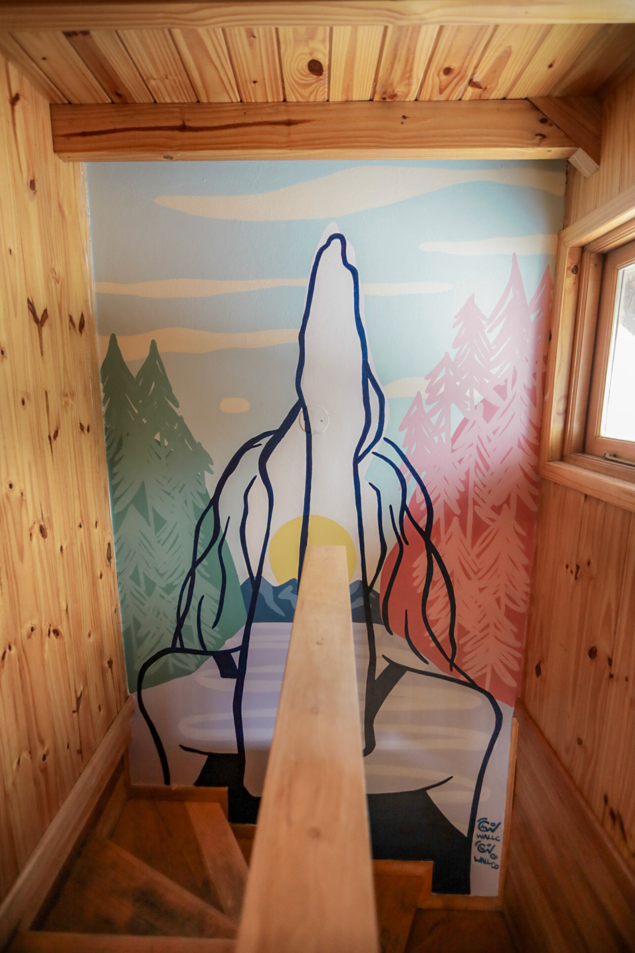 Dos cabañas, 2 murales para identificarlas. Dos diseños originales inspirados en el entorno y la conexión con la naturaleza que se genera estando ahí.