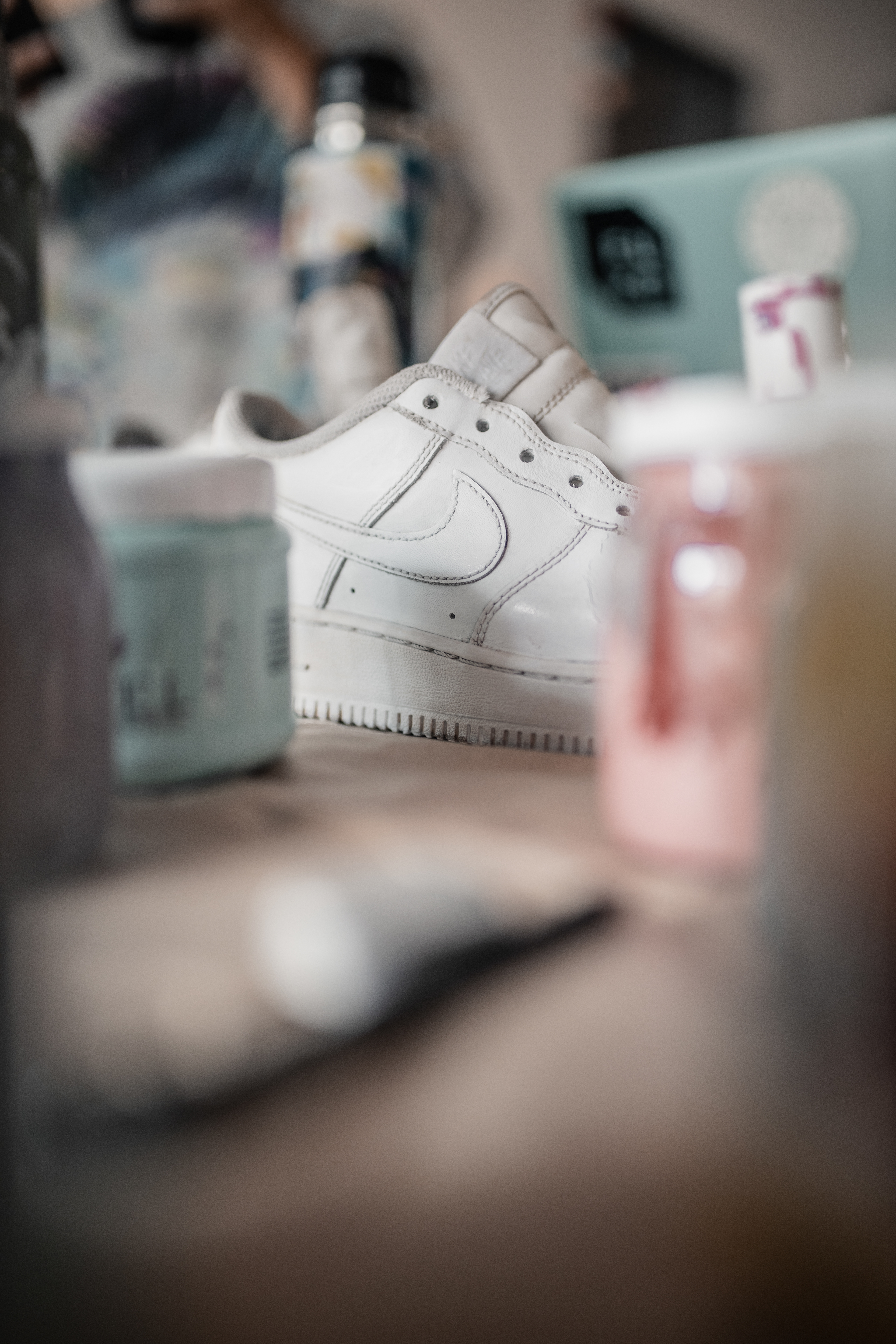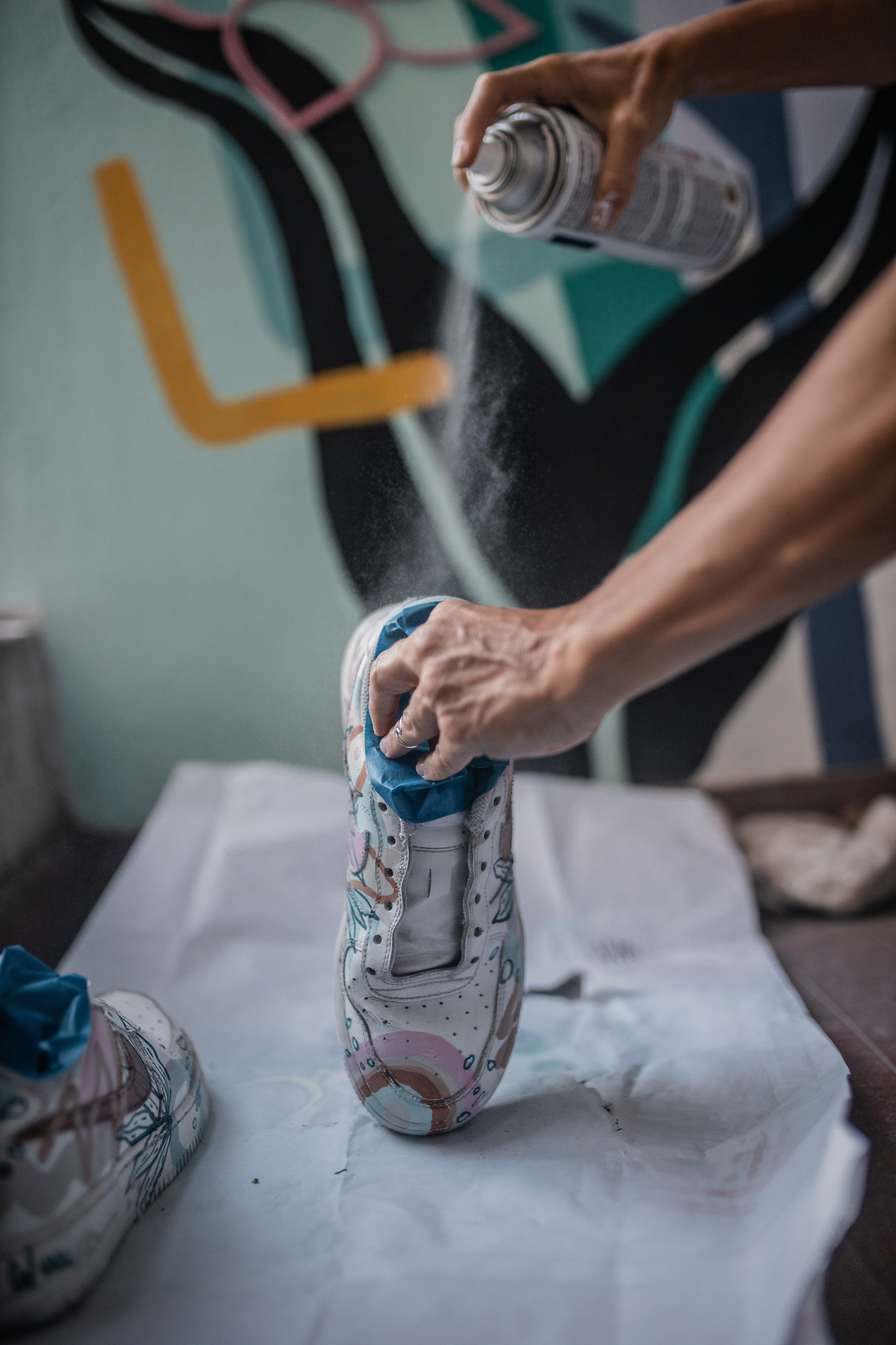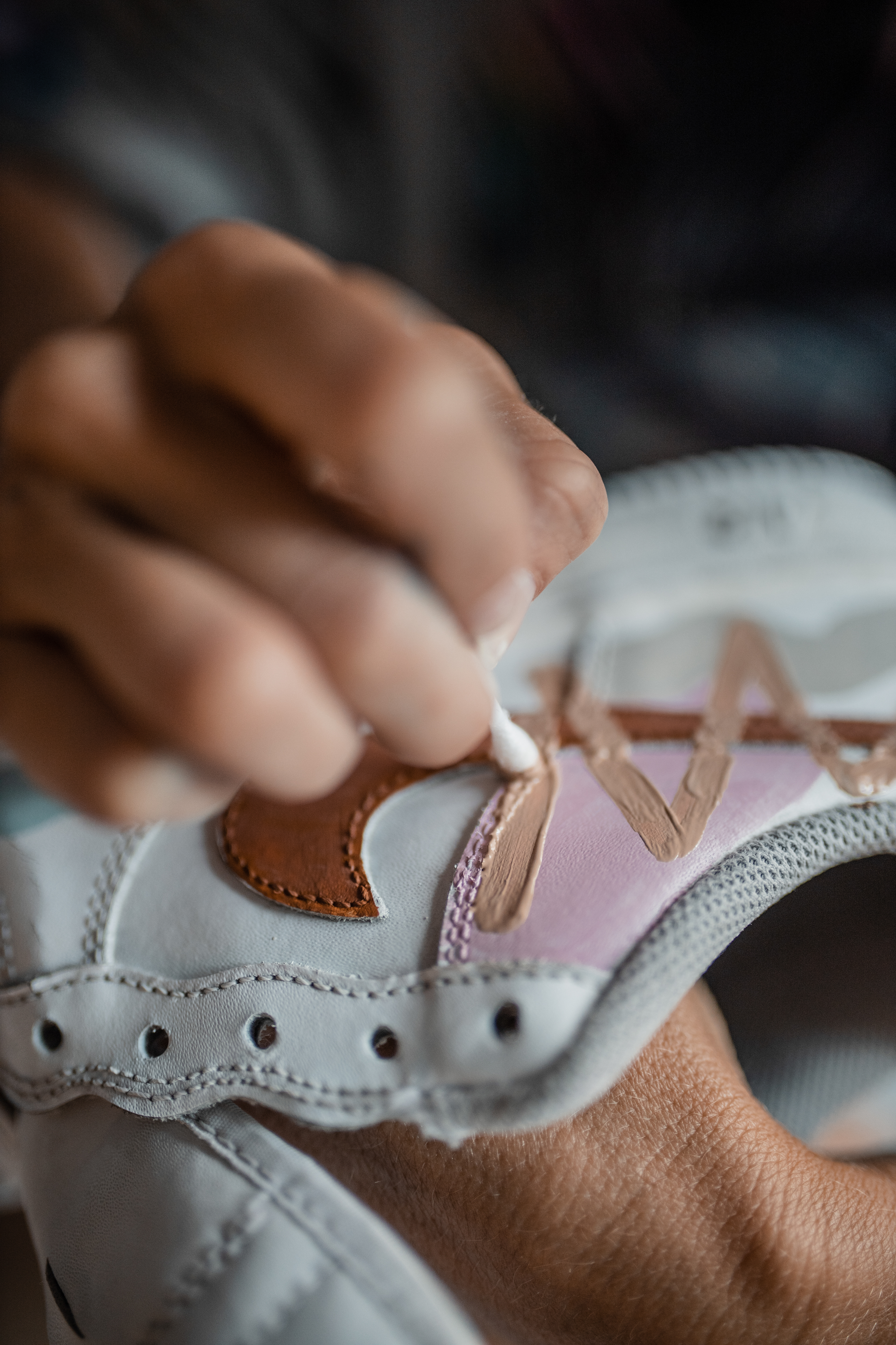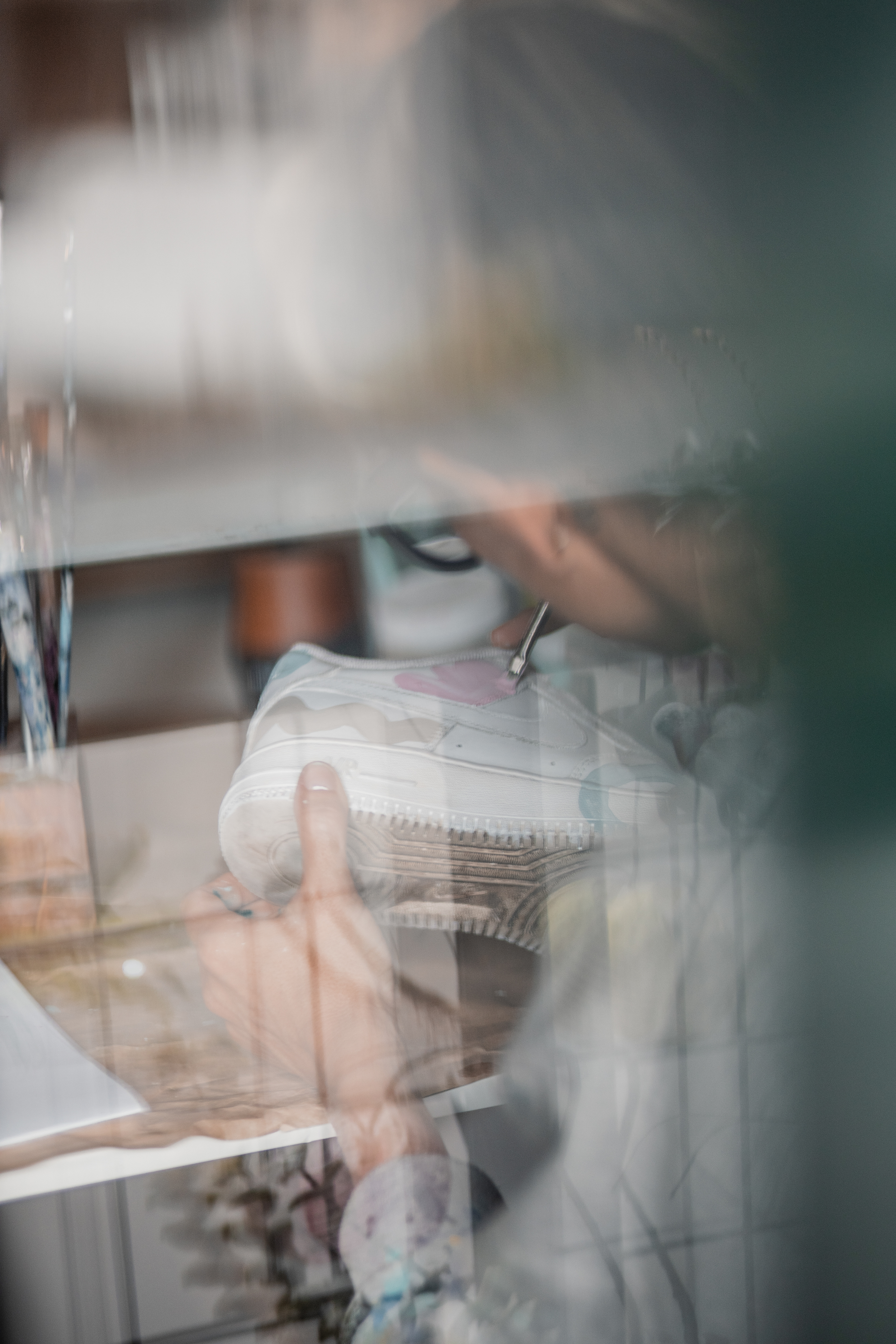 PAR DE ZAPATILLAS AF 1 INTERVENIDAS A PEDIDO, DISEÑADAS EN EL MOMENTO, CON PALETA DE COLORES "TIERRA" A PEDIDO DE SU DUEÑA.
