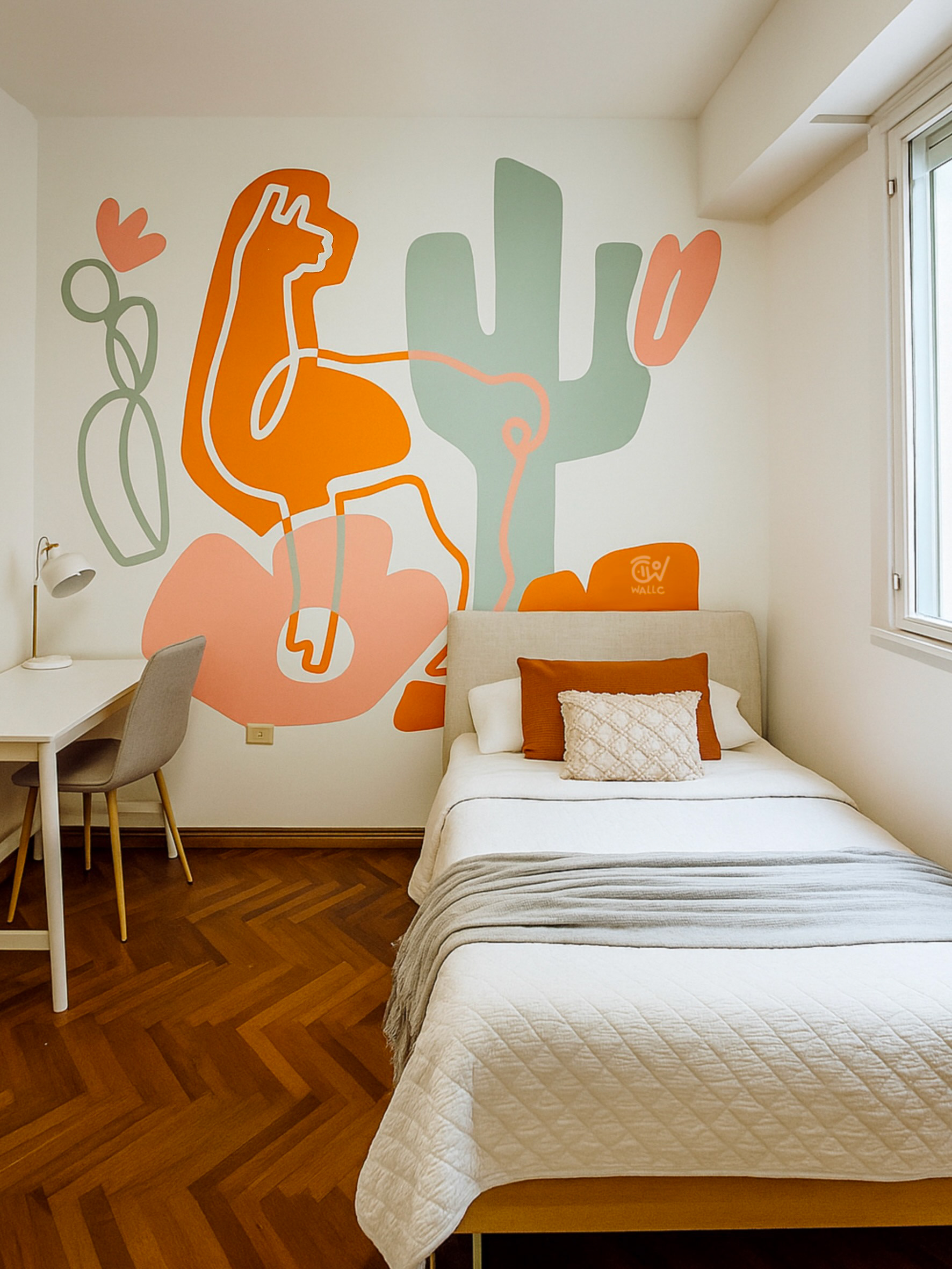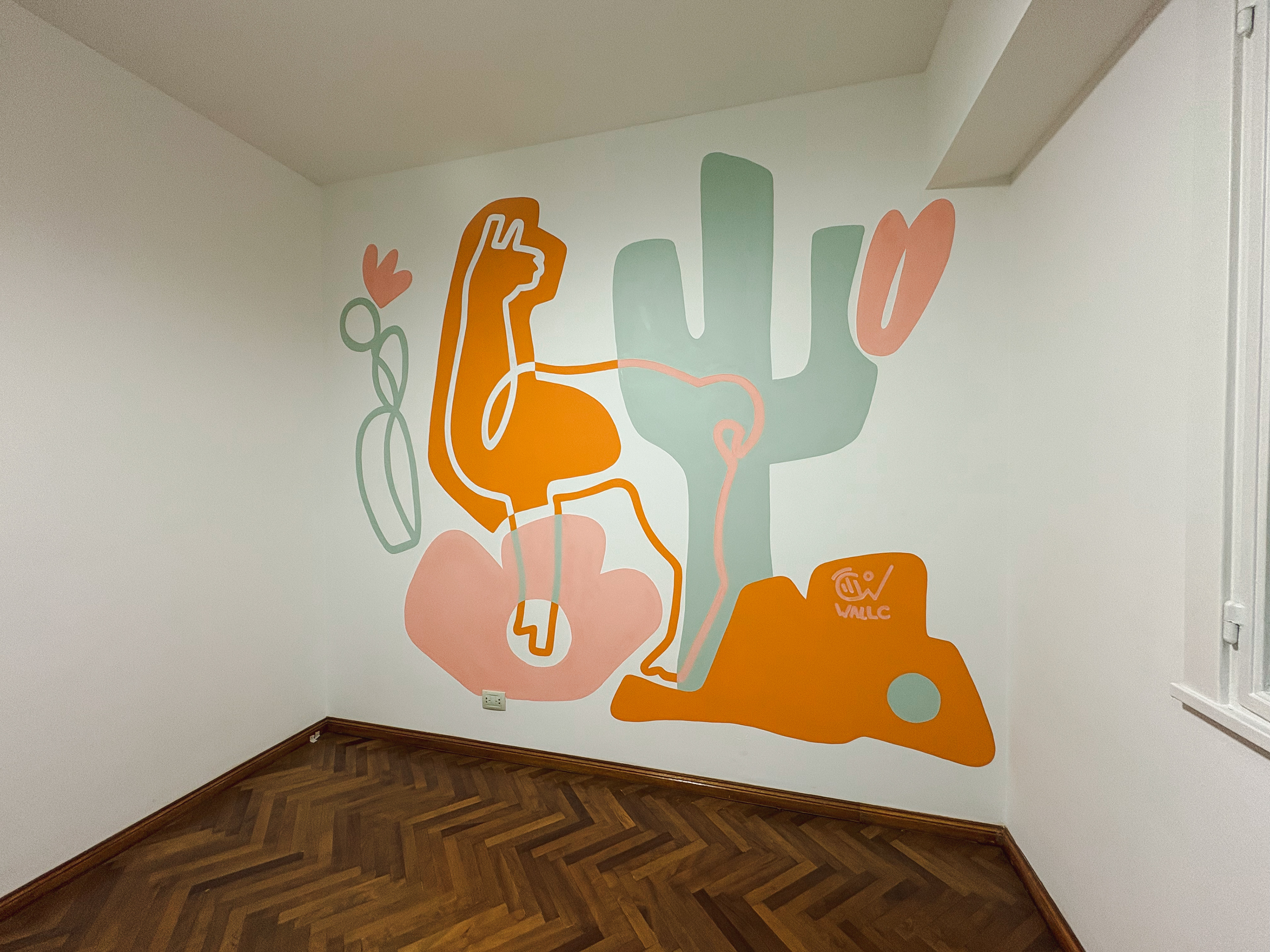 Mural dentro del proyecto Flash Mural, una serie de murales por catálogo, con diseños minimalistas a 3 colores, aplicable a todo tipo de espacios.