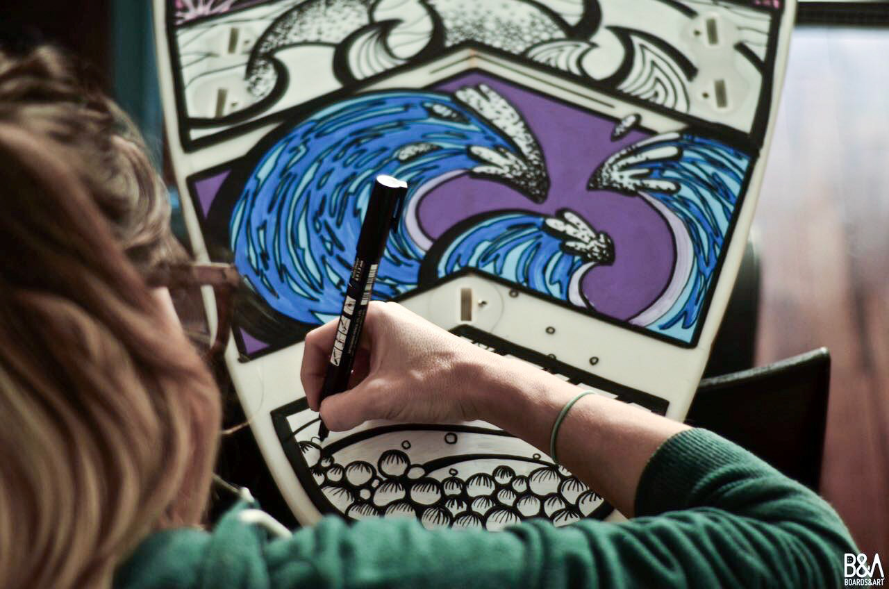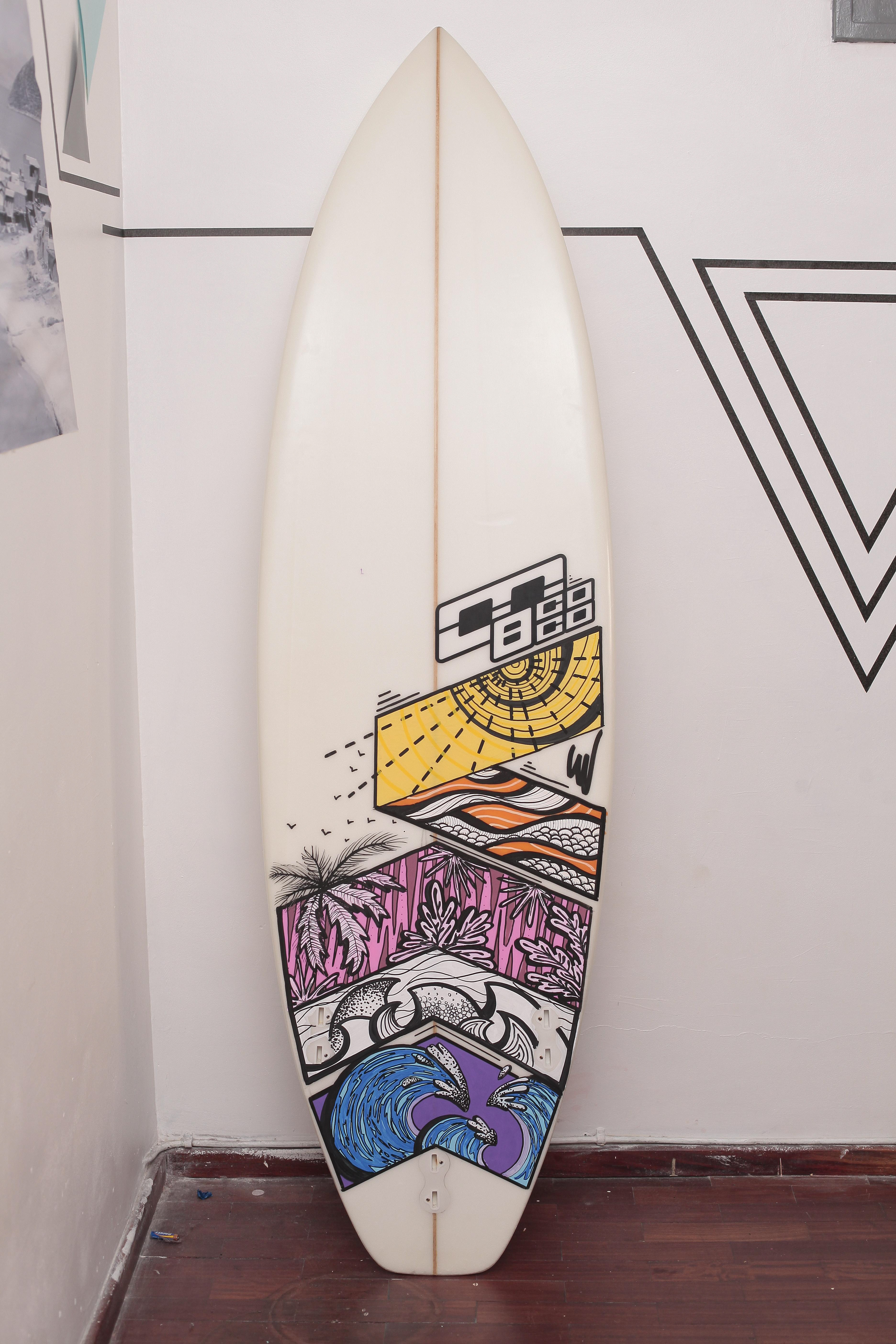 ILUSTRACIÓN POR ENCARGO PARA EL DUEÑO DE LA TABLA, SURFISTA FANATICO Y AMIGO DEL MAR. EL DISEÑO FUE LIBRE SIN BOCETO PREVIO, SIGUIENDO EL PEDIDO DE QUE FUESE COLORIDO.