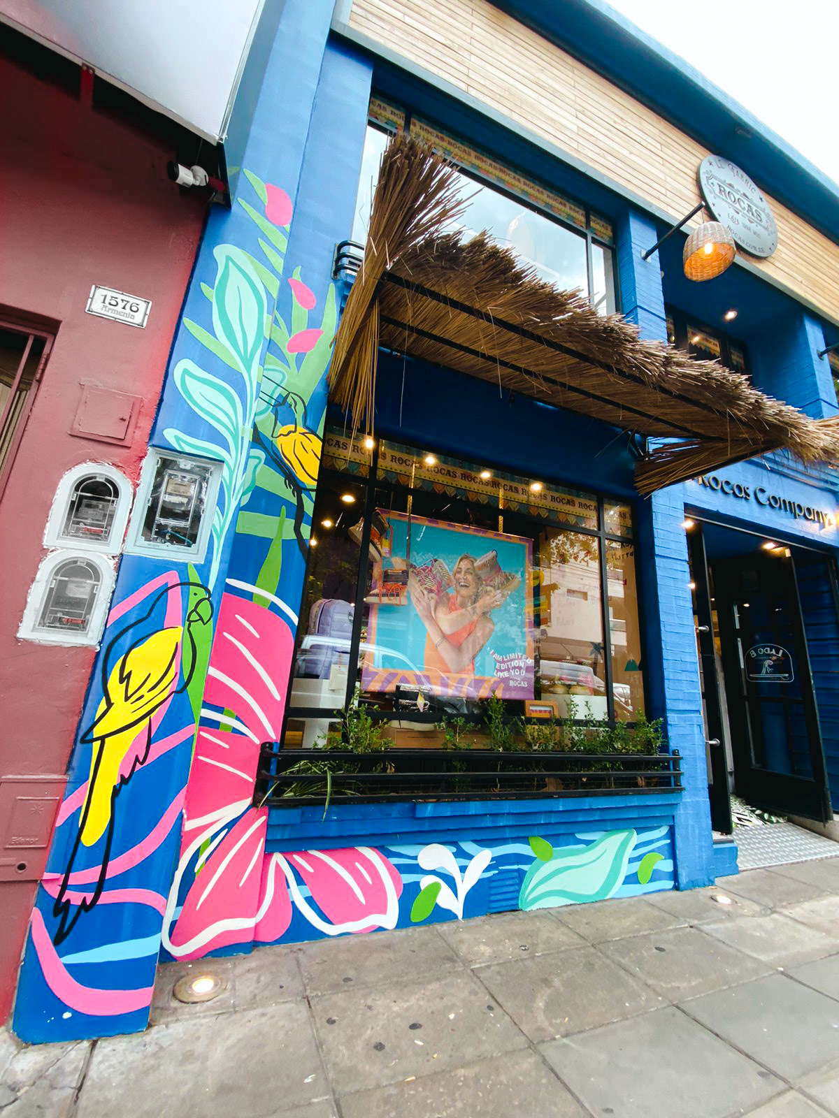 Renovación de la fachada de local Rocas Company de Palermo, en contexto de lanzamiento de nuevo producto. El diseño, acorde al espíritu de la marca, enmarca y distingue las vidrieras de línea femenina y masculina.