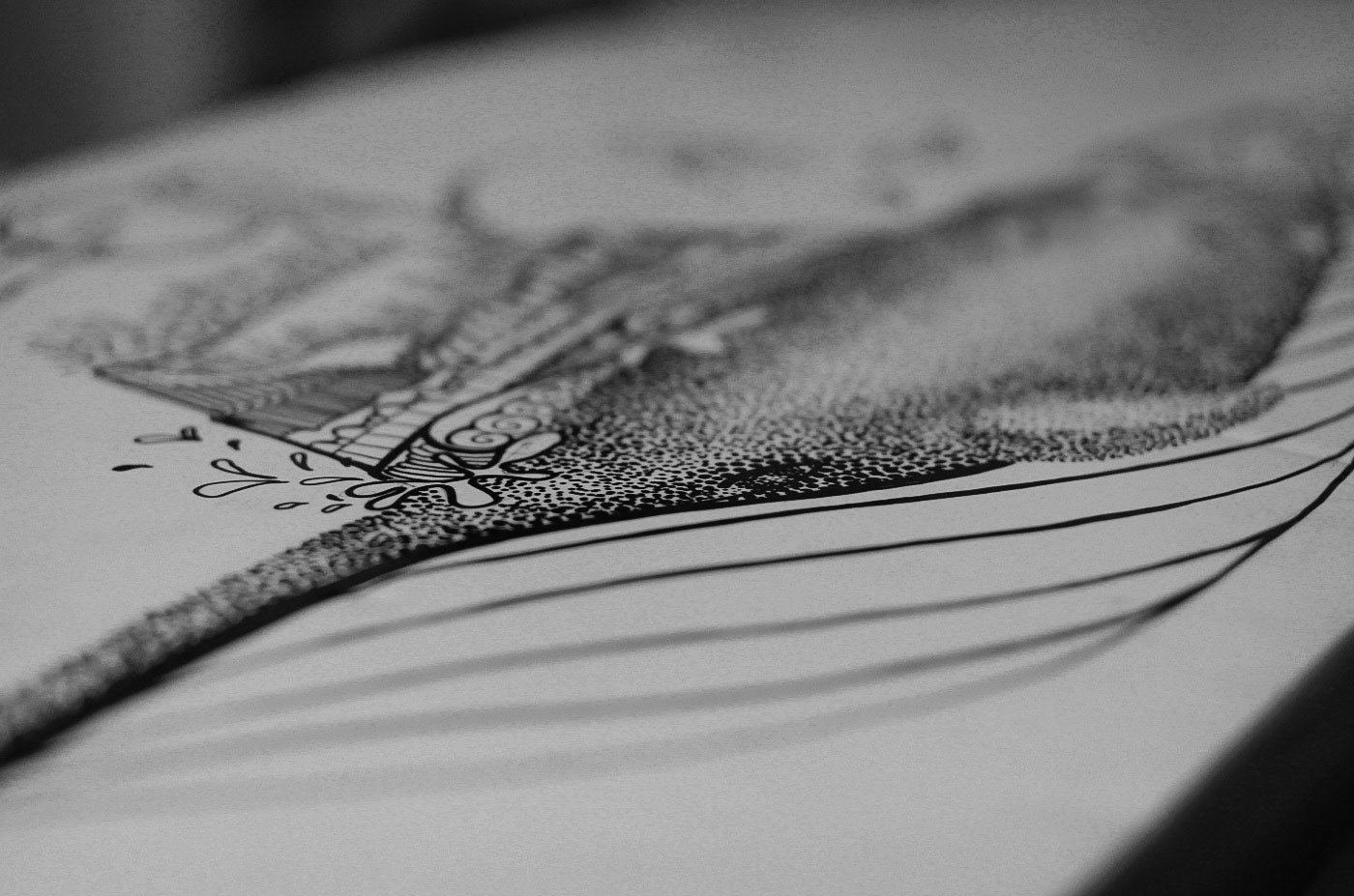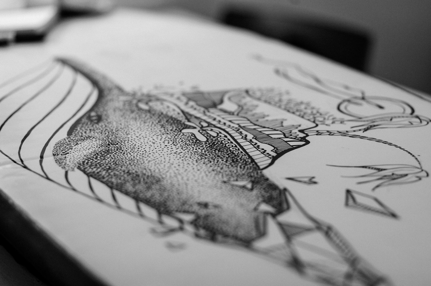 Hand made surfboard art, specially designed for it's owner, who shoot and filmed all the working process.I made all the art just using Sharpie oil black pens.